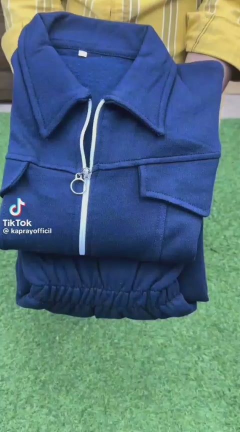 Blue Color 2-Pcs Winter Tracksuit Short Jacket Long Maxi Style