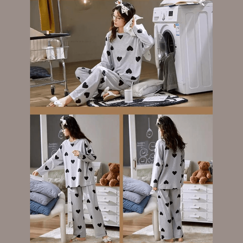 Grey dil dil heart full sleeve printed design night suit fabric cotton jarsy