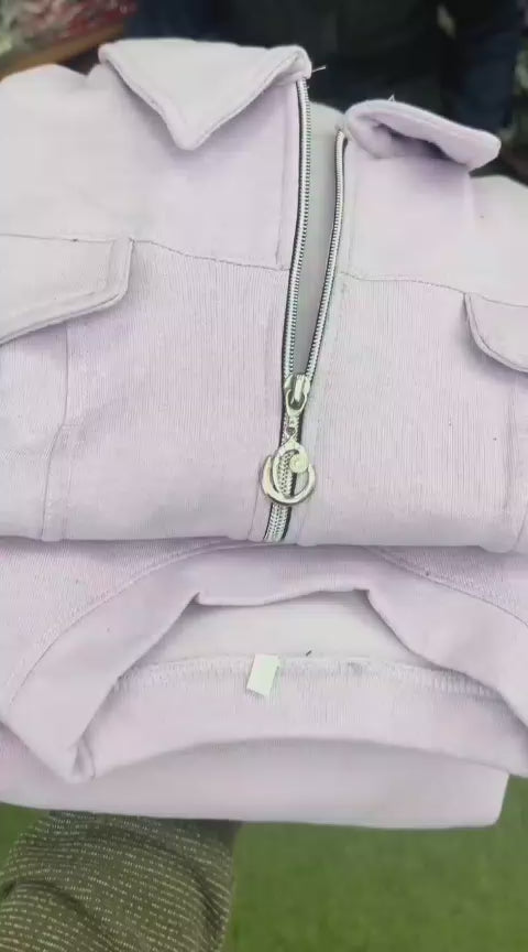 Pink Color 2-Pcs Winter Tracksuit Short Jacket Long Maxi Style